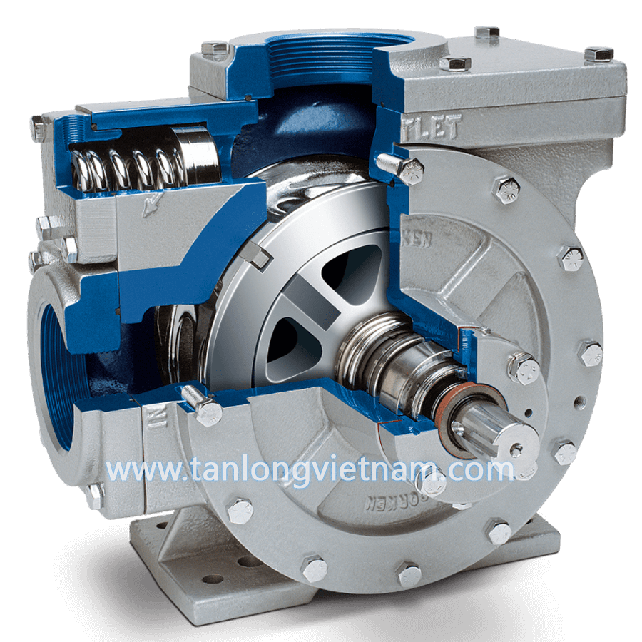 - Unique porting and profiling of the cam reduces cavitation and noise and improves pump efficiency.